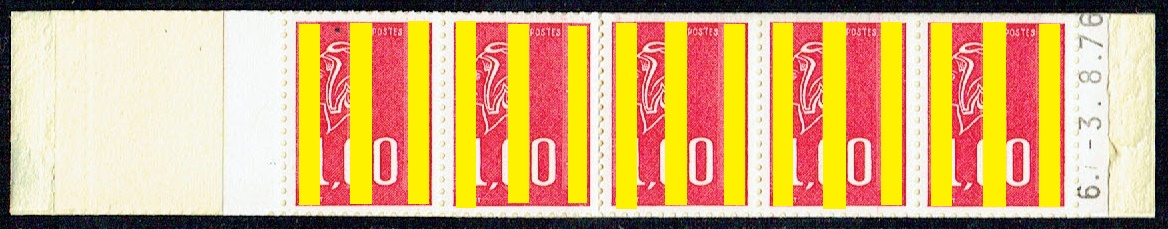 (Cyl. K) B 1.00FF rouge « Marianne de Béquet » de carnet de 5 timbres 03.08.76 TD6-6 Sans n° conf. B 1.00FF rouge « Marianne de Béquet » de carnet de 10 timbres 05.08.76 TD6-6 Conf. 4
