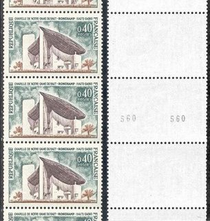 - 1970 : Impression de la seule roulette double format un timbre double format (0.40FF « La chapelle Notre-Dame de Ronchamp ») avec deux numéros rouge identiques, au verso sur chaque timbre en bobine de 1000 timbres, imprimés tous les 10 timbres.