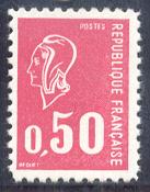 0.50FF rouge « Marianne de Béquet » d'Aubervilliers pour tromper La Poste sans bande phosphorescente