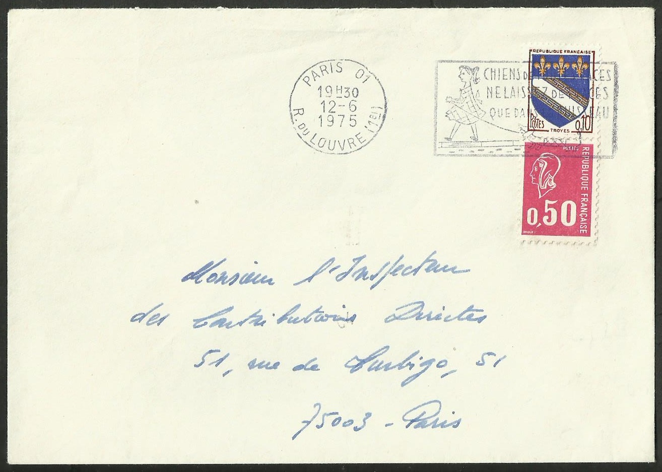 Lettre de Paris (1er arrond.) du 12.06.75 à destination de Paris (3e arrond.)