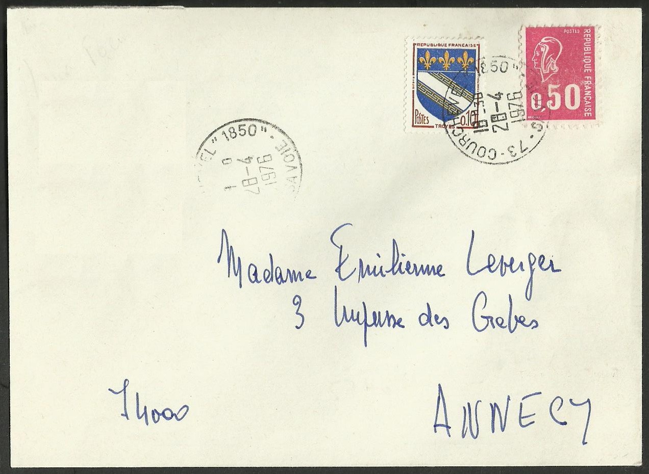 Lettre de Courchevelle (Savoie) du 20.04.76 à destination d'Annecy (Haute-Savoie)