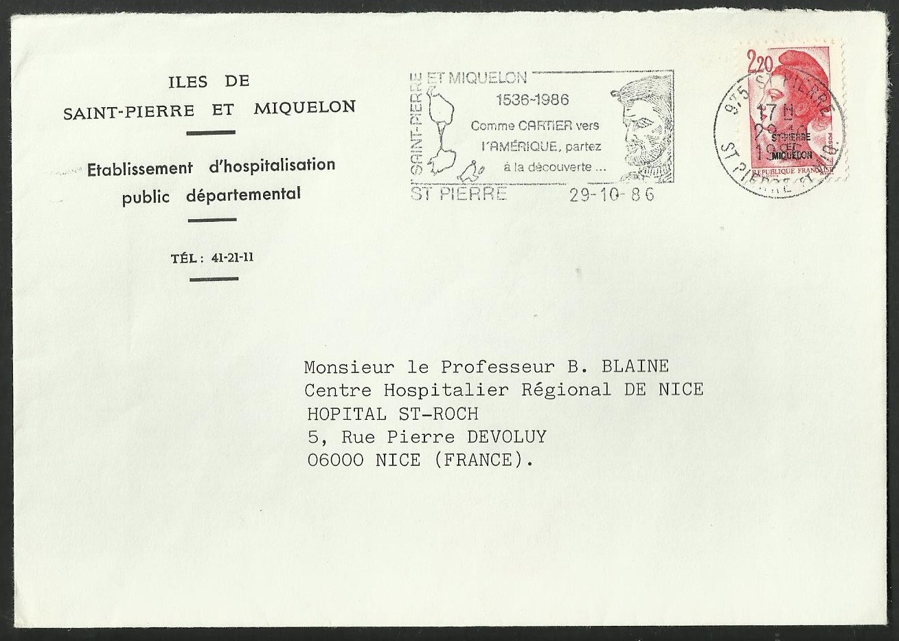 Lettre du 25.09.86 de Saint-Pierre (Saint-Pierre et Miquelon) à destination de Saint-Pierre (Saint-Pierre et Miquelon)