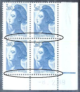 Les timbre 2.20FF rouge « Liberté de Gandon » et 4.00FF rose « Marianne du Bicentenaire » imprimés avec un re-entry existent sans bande phosphorescente.