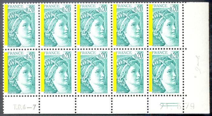 Sur ce tirage il a été utilisé par erreur le cylindre d'impression avec deux bandes utilisé lors du 1er tirage du 2.00FF vert-jaune « Sabine de Gandon » du 24.02.78 au 06.03.78 également réalisé sur la presse TD6-3.