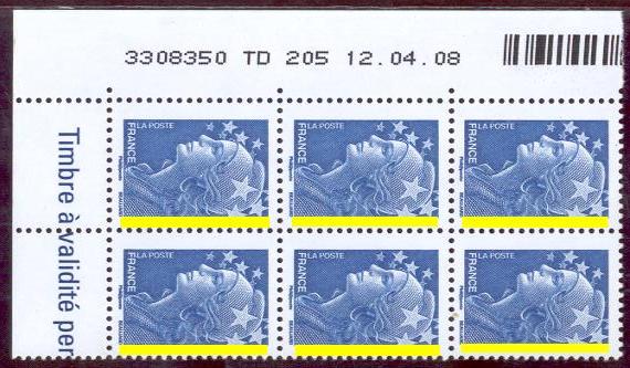 TVP bleu « Marianne et l'Europe » - Une bande phosphorescente à droite au lieu de deux bandes phosphorescentes