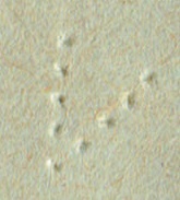 Un entr’axe fixe (distance séparant deux points identiques) est observable ente chaque marque frappée à sec.