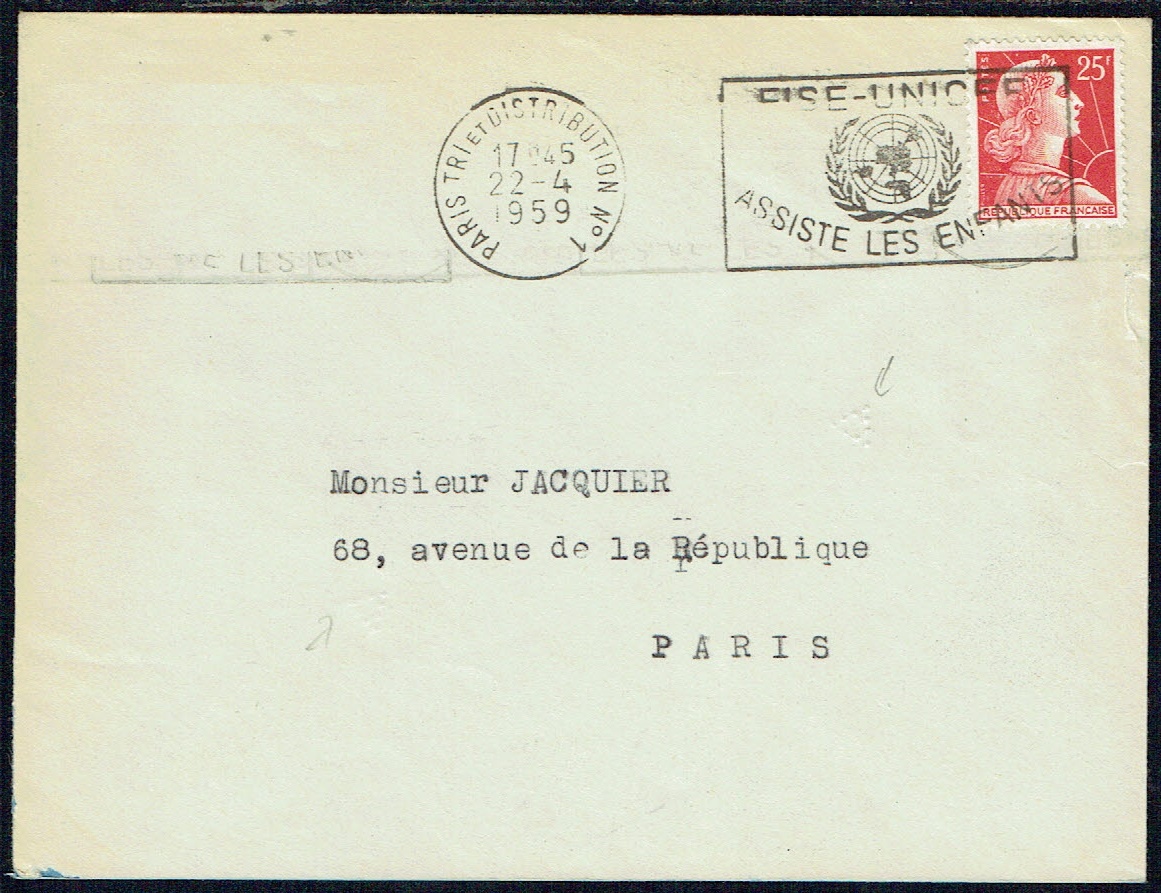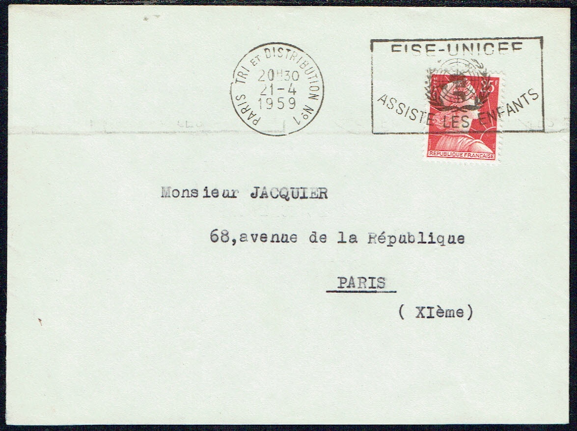 Lettre de Paris Tri et distribution n°1 du 21.04.59 à destination de Paris