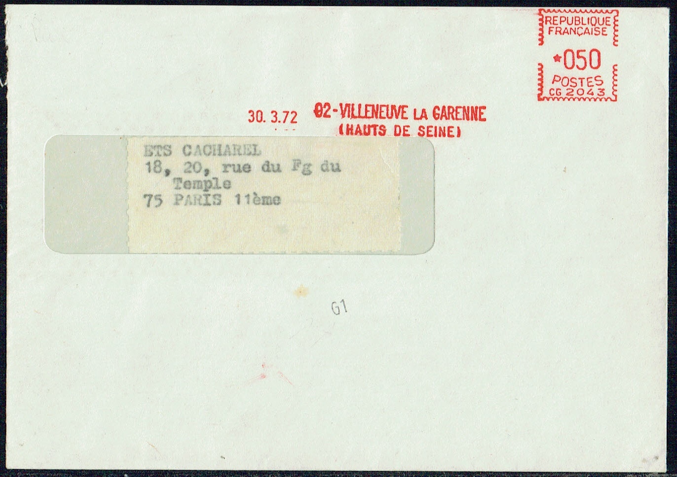 A partir de fin 1969, ce marquage encré fut généralisé sur toutes les machines des Centres de Tri de Paris RP Rue du Louvre, Paris-Brune, Lille-Gare et Marseille-Gare.