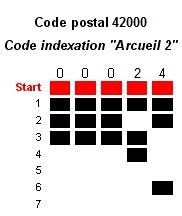 Le code numérique « Arcueil 1 » est un code P.L.M. utilisant le Code Postal à cinq chiffres.