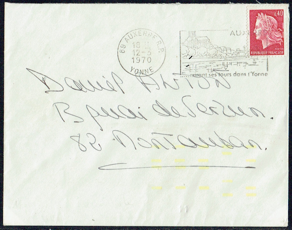 Lettre d'Auxerre (Yonne) à destination de Montauban (Tarn-et-Garonne) du 12.03.70
