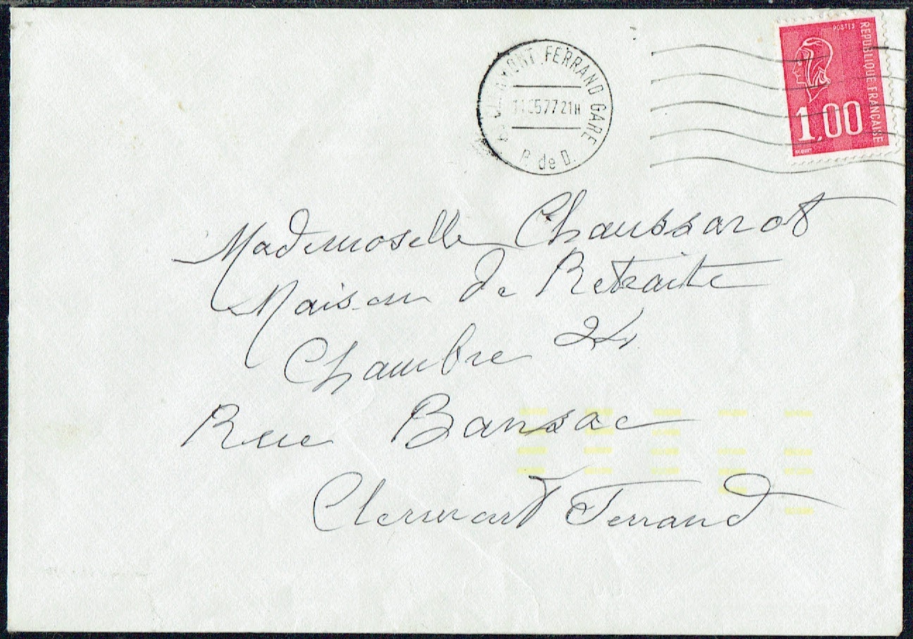 Lettre du Clermont-Ferrand (Puy-de- Dôme) du 28.12.70 à destination de Clermont-Ferrand (Puy-de- Dôme)
