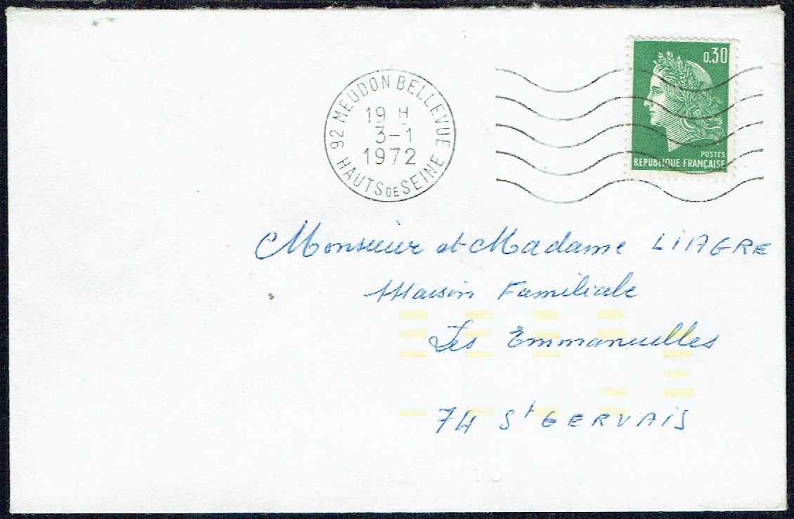 Lettre de Meudon Bellevue (Hauts-de-Seine) à destination de Saint-Gervais (Haute-Savoie)