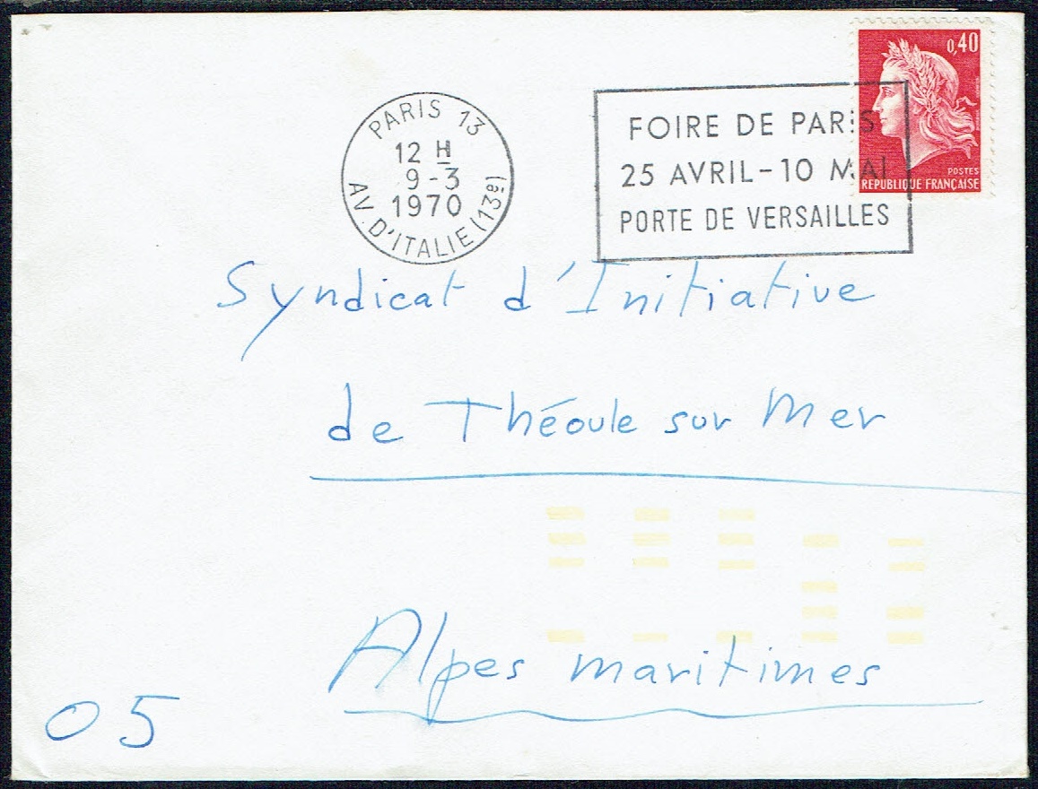 Lettre de Paris 13 à destination de Théoule sur Mer (Alpes-Maritimes)