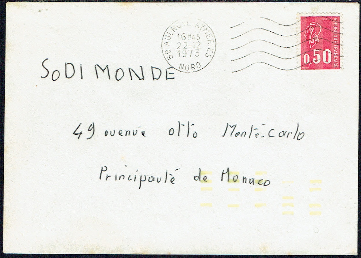 Lettre d'Aulnoye-Aymeries (Nord) à destination de Monaco