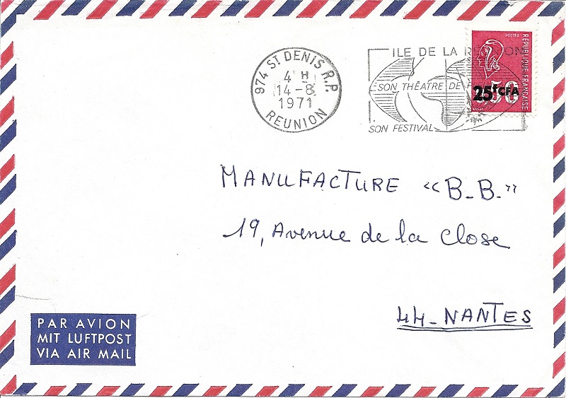 We will first illustrate all the known presentations of the stamp 0,50F Marianne de Béquet by means of covers containing a copy of each of the variants of this stamp.