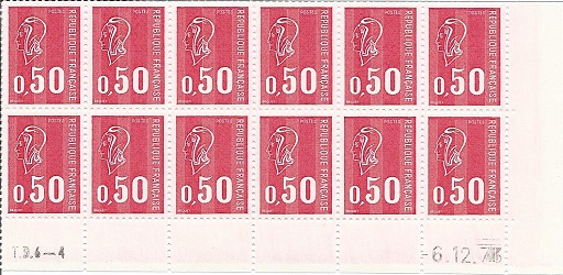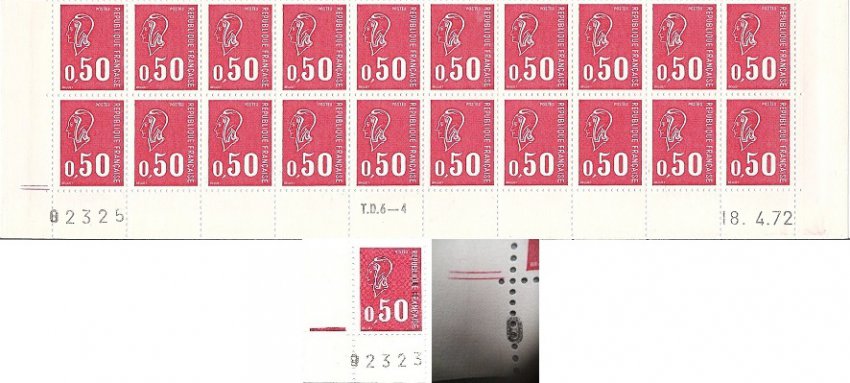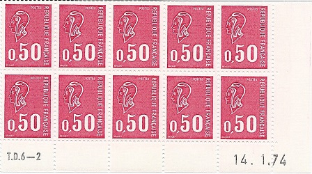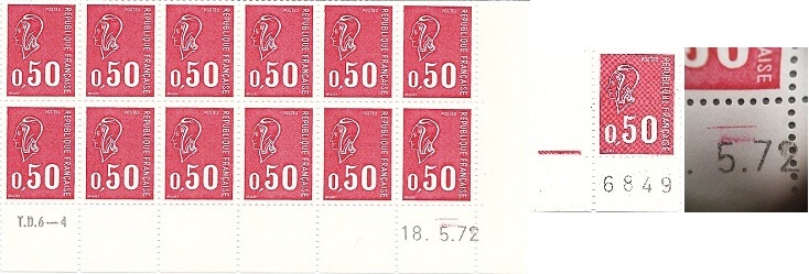 - The printings of the stamp 0,50F Marianne de Béquet on TD6 presses