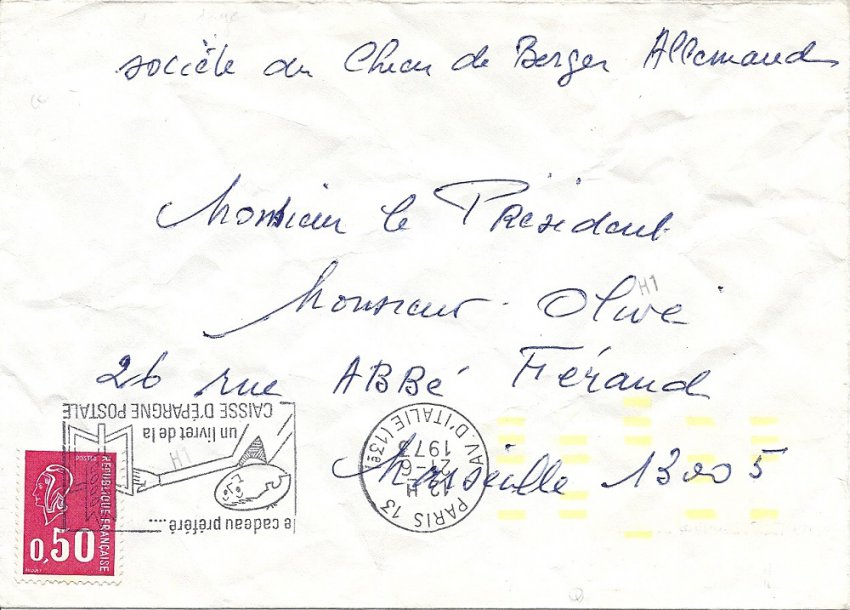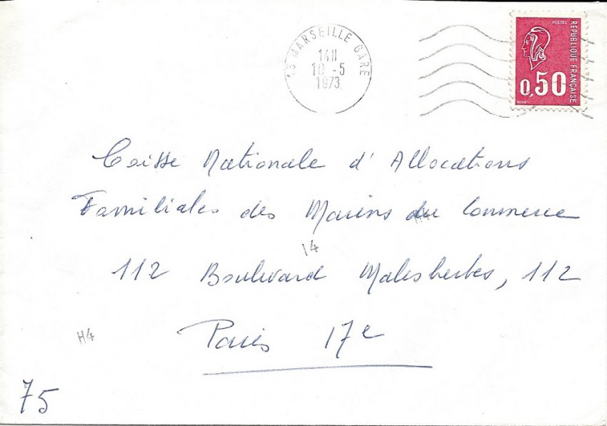 Ce code a été utilisé au centre Paris-P.L.M. de octobre 1969 à juillet 1975, au centre d’Arcueil de fin janvier 1971 au 31 juillet 1973 et au centre de Clermont-Ferrand de juin 1971 à octobre 1974. Voici quelques exemples de plis illustrant ce code :