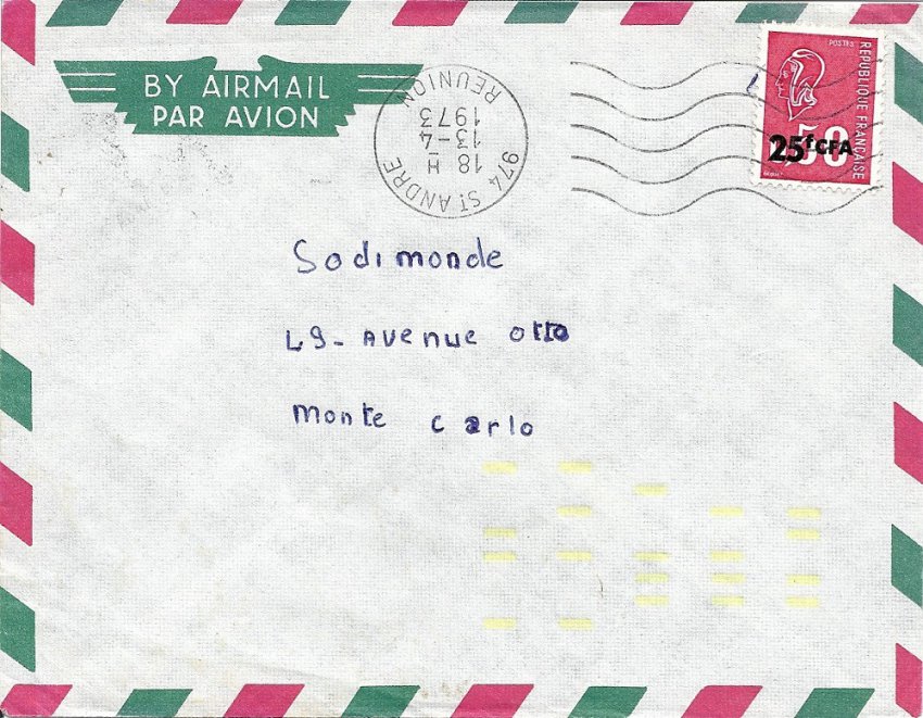 Depuis mars 1974, on trouve aussi des indexations de distribution en bas à gauche de l’enveloppe, sous forme de 19 bâtonnets verticaux. Je ne parlerai pas ici du dictionnaire de ces indexations de distribution (un peu complexes). Les internautes intéressés peuvent consulter la brochure L’automation dans les P.T.T., Tome 3, de A. FRYBOURG ou le site LES BARRES PHOSPHORESCENTES ET LEURS VARIETES.