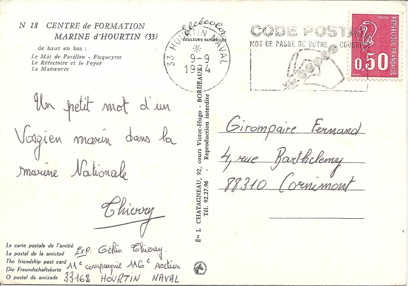- empreinte muette à droite du bureau naval n° 64 (embarqué à bord du bâtiment de commandement De GRASSE)