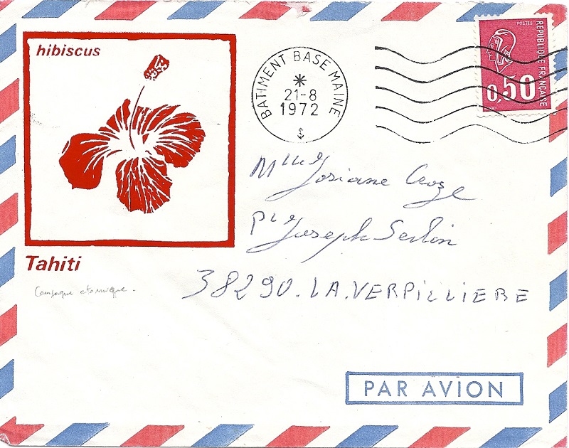 - empreinte illustrée à droite d’un bureau postal militaire de Polynésie