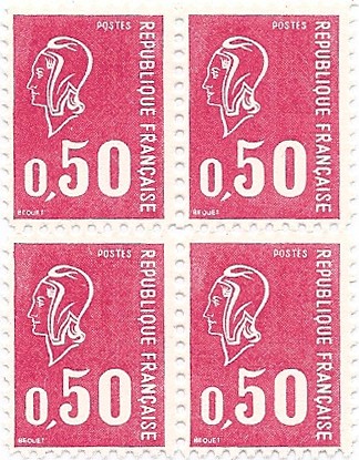 On connaît un faux pour tromper la poste au type 0,50F Marianne de Béquet, qui est appelé faux « d’Aubervilliers ». Il s’agit d’un timbre fabriqué en offset, légèrement plus grand que le timbre authentique (20,5 x 26,5 mm au lieu de 20 x 26 mm) et dentelé 11x15.