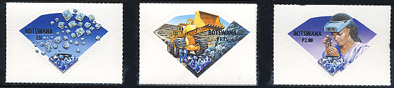 Série de 4 timbres auto-adhésifs : 851 - 854 diamants pelleteuse dans une mine jeune femme examinant un diamant bague et pendentif avec diamant (manque)
