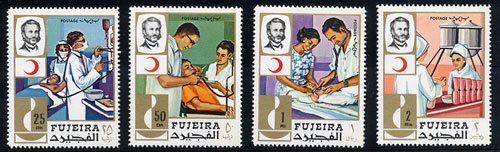 + idem pour avion avec surcharge : CENTENARY OF BRITISH RED CROSS SOCIETY et AIRMAIL en Anglais et en Arabe du côté gauche.
