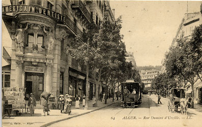 La rue : enseigne "AMERICAN DENTISTE R.M.RICCA" près de la poste.